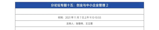 在7日上午的会议中,张敬伟教授和深圳大学王立雯教授共同主持了“创业与中小企业管理”专题论坛2,并对分论坛汇报的7篇论文进行了点评。