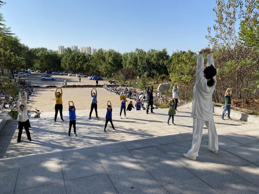 赵爱杰护士长对八段锦及中国文化有着深入的理解与感悟,活动中赵老师从动作分解、动作要领,到时令气候、中医养生,给学院的老师们上了生动的一课。