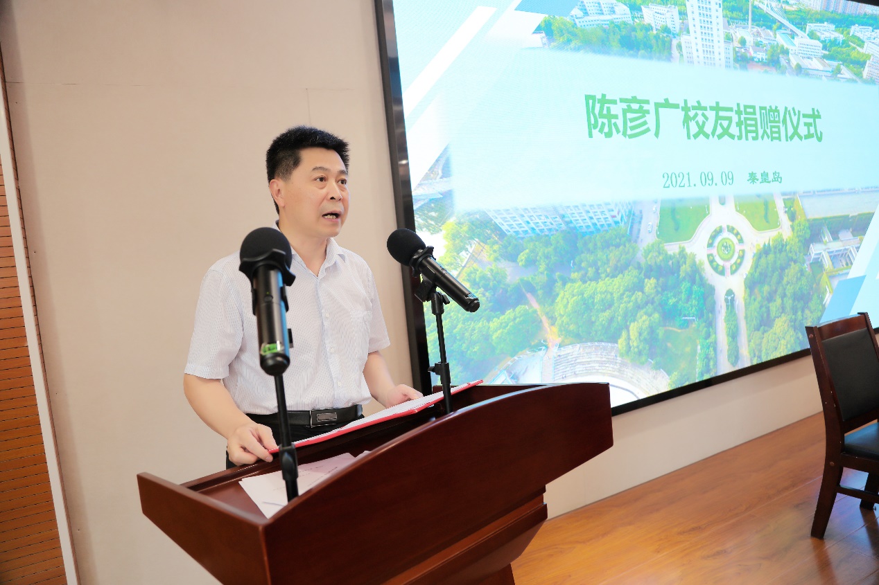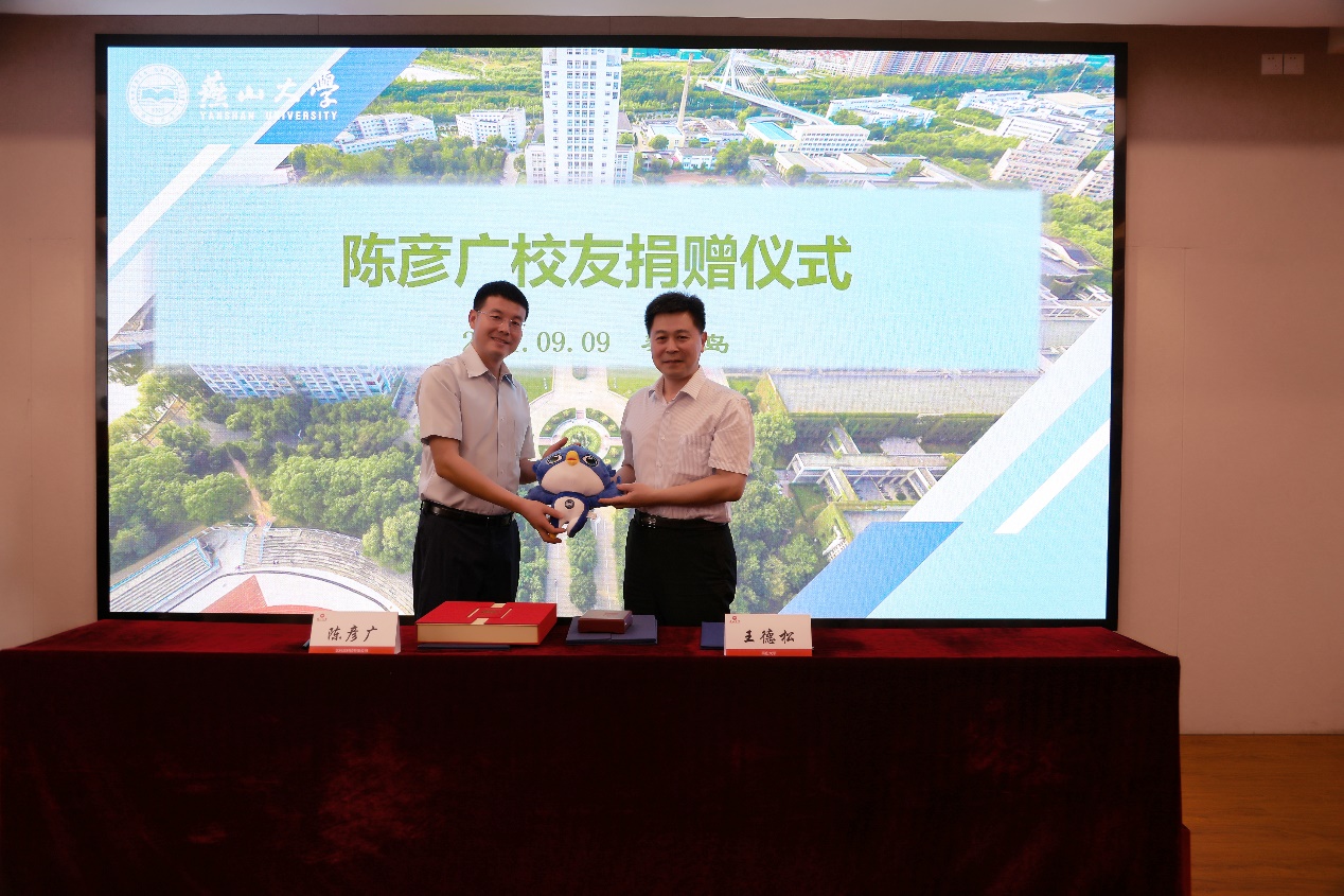 燕山大学副校长王德松与陈彦广校友共同签署捐赠协议