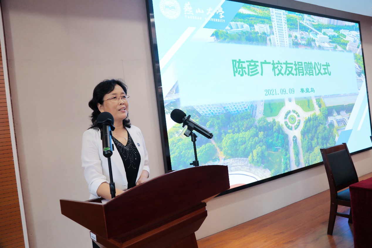 捐赠仪式上,院长李春玲首先回顾了陈彦广校友与永利集团yl6809官网的渊源,以及陈彦广校友萌生捐赠想法的初衷,对陈彦广校友的爱院情节表示赞许与衷心的感谢。她表示,陈彦广校友多年来一直关注学院发展,在人才培养、专业建设等多方面为学院助力。校友是学院最为宝贵的资源和财富,希望校友们继续和学院保持密切联系,在全面参与母校人才培养、科技服务、文化传承中打造校友文化品牌。