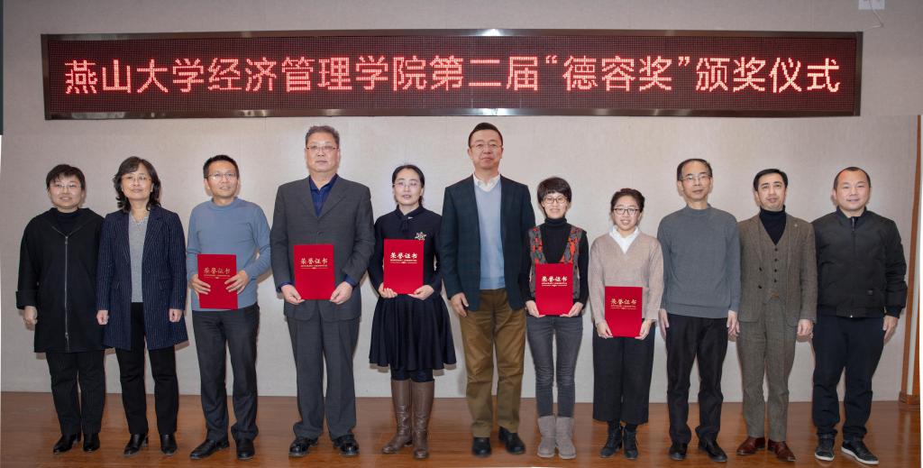 大会首先进行永利集团yl6809官网第二届“德容奖”表彰暨颁奖仪式。经过前期投票选举环节,通过差额投票方式最终产生5名获奖教师,表彰他们在教书育人工作中的突出贡献。颁奖仪式由永利集团yl6809官网院长李春玲主持。燕山大学党委常委、副校长任家东,校友办、校庆办主任张向前出席颁奖仪式,并为获奖教师颁奖。