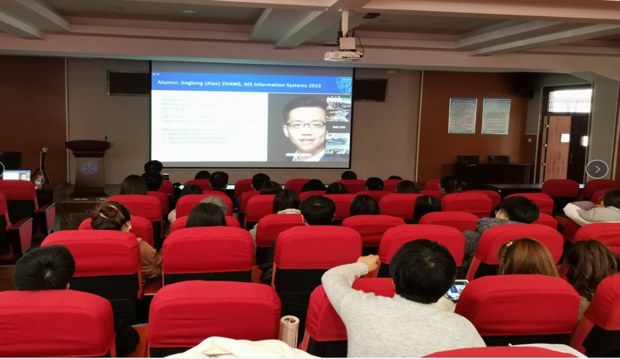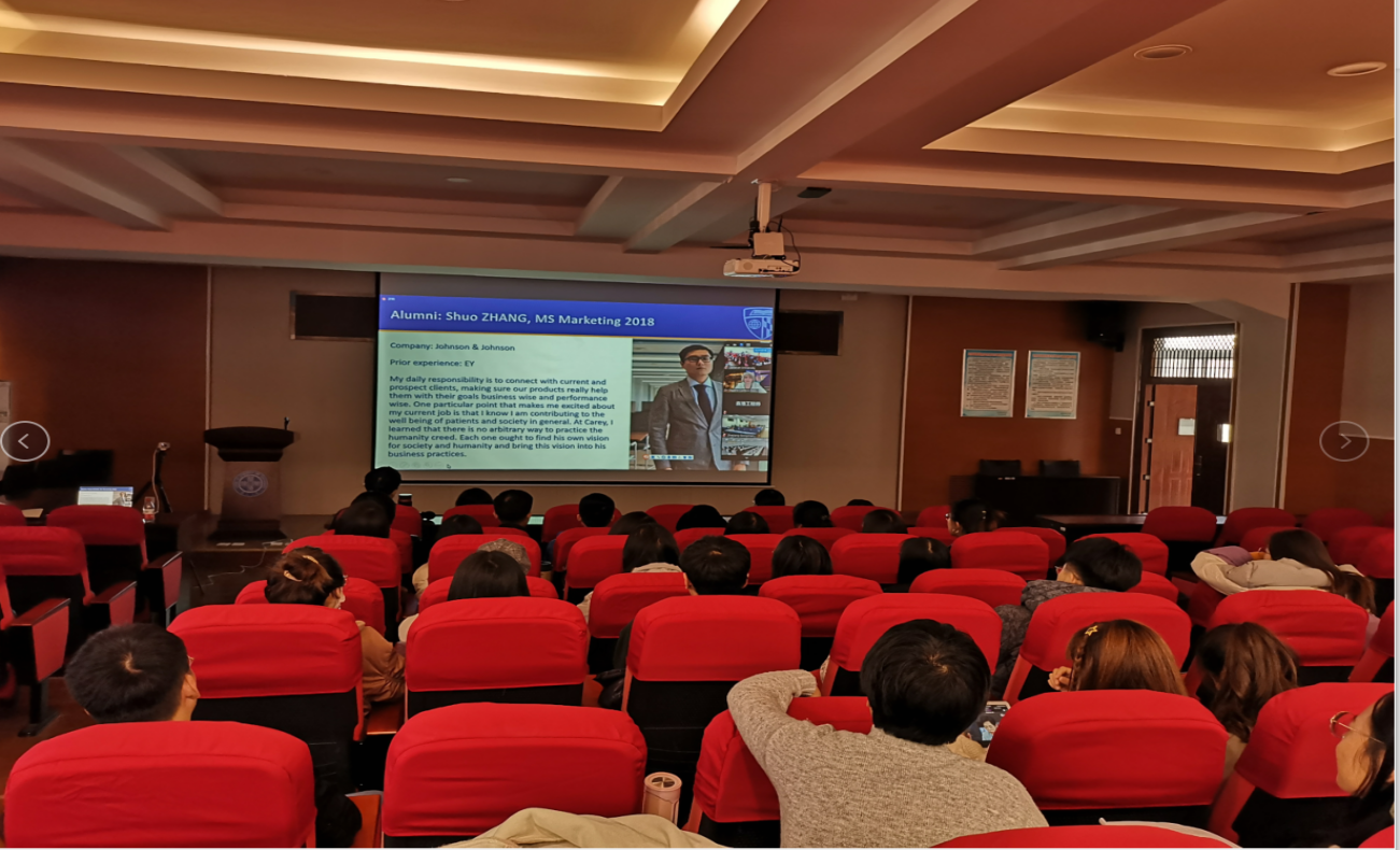 11月14日下午,国家留学基金管理委员会第十二届国际研究生奖学金信息说明会约翰霍普金斯大学商学院专场在经管楼A218会议室举行,本次专场说明会由永利集团yl6809官网协助国际合作处组织完成。此次活动采用线上线下同时进行的形式。参加线上宣讲活动的院校包括燕山大学、南开大学、河南大学、山东科技大学等十几所高校。我院50多位研究生和大四本科生参加了线下交流活动。