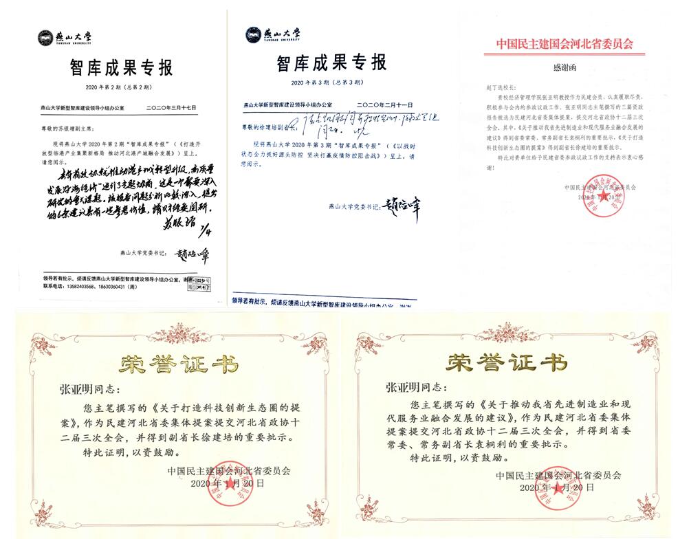 张亚明教授长期从事经济管理科学学术研究和政府建言咨政服务,近年来被省市领导批阅近30次,在SCI/EI/CSSCI等发表高水平学术论文100余篇,其中中科院1区/TOP期刊/Nature子刊等SCI检索论文近20篇,国家自然科学基金委管理学部认定A类等一级期刊8篇。研究成果累计引用1000余次,15篇被国务院发展研究中心网站国研网全文收录,2篇被中国社会科学网全文收录,2篇被人大报刊复印资料全文转载,1篇被《新华文摘》收录,5篇被中共中央统战部网站收录,4篇被民建中央网站收录,1篇刊载在人民政协报,2篇刊载在河北日报。今年撰写咨政报告4篇,均获得省领导肯定性批示,为我院智库建设做出了突出贡献。