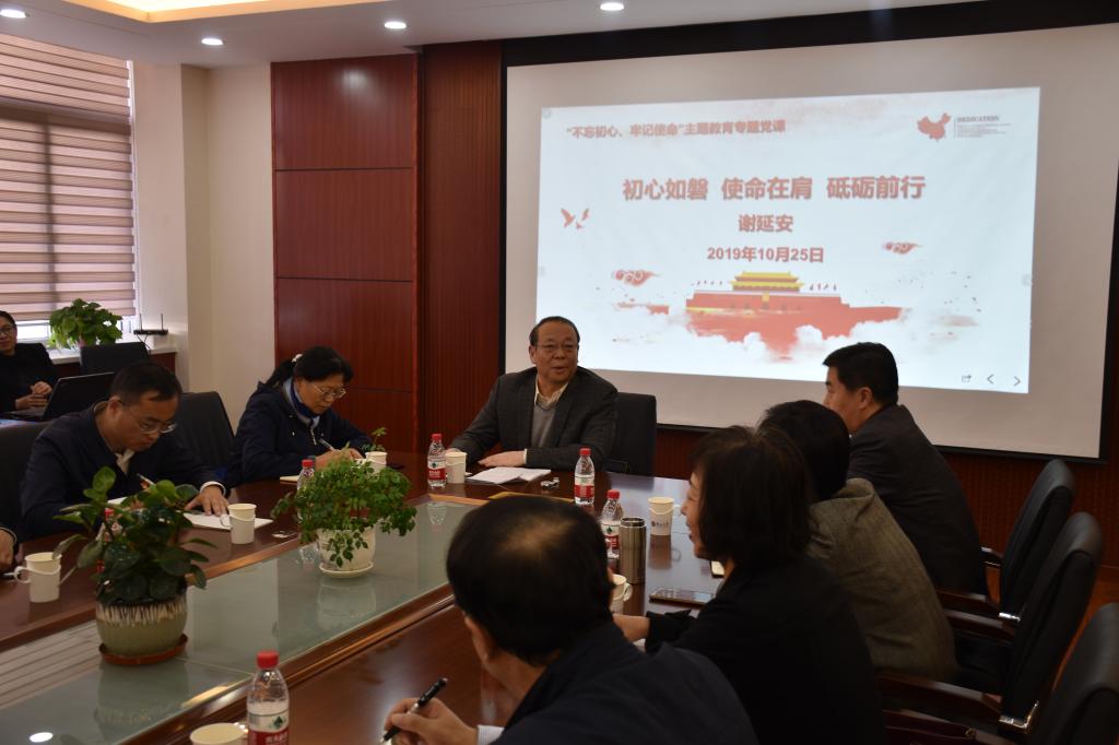 谢延安紧扣“不忘初心、牢记使命”主题,从提高站位,深刻理解认识党的初心和使命;落实高校立德树人、为党育人、为国育才的根本任务;自我革新,担当作为,如何守初心和担使命三个方面展开讲座。