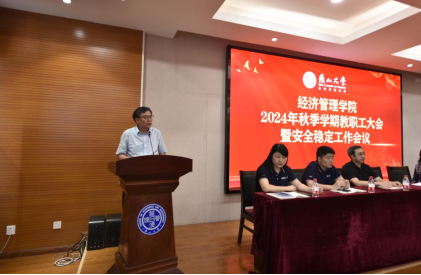 为切实做好新学期开学准备,确保开学各项工作顺利、有序地开展,9月5日下午,永利集团yl6809官网在经管楼A218报告厅召开2024年秋季学期全体教职工大会暨安全稳定工作会议,学院领导班子成员、全院教职工参加了会议。会议由学院正处级专职辅导员杨小丽主持。