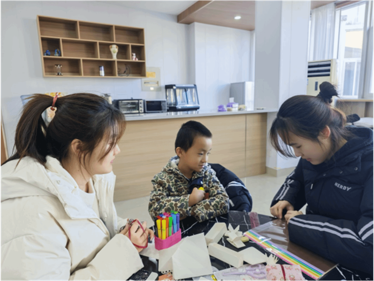 活动期间,在大学生志愿者的协助下,益智课、手工课、益体课、文艺课、观影课共计35门精彩纷呈的课程有序展开。益智课上,孩子们在记忆配对、汉字加减、语言游戏中穿梭,思维的火花不断碰撞,小小的脑袋里装满了智慧的宝藏;观影课上,孩子们踏入了光影编织的梦幻世界,观影后思想的火花在这一方小小的空间里自由碰撞,智慧的种子在彼此的交流中悄然萌芽;手工课成了创意的魔法天地,回形针动力船扬帆起航、纸飞机翱翔天际、毛线缠绕出梦幻画卷、竹编勾勒出传统韵味、便签纸筑起温馨小屋,每一件作品都凝聚着孩子们的奇思妙想和动手实践的快乐;益体课活力满满,抢椅子时的紧张刺激、篮球运输中的团队协作、信号灯下的敏捷应变、植物大战僵尸的趣味对抗,让孩子们在欢腾中锻炼了体魄,培养了坚韧的毅力;文艺课则是艺术的摇篮,歌声悠扬、舞姿翩翩、手势灵动,孩子们沉浸其中,感受着艺术的无穷魅力。