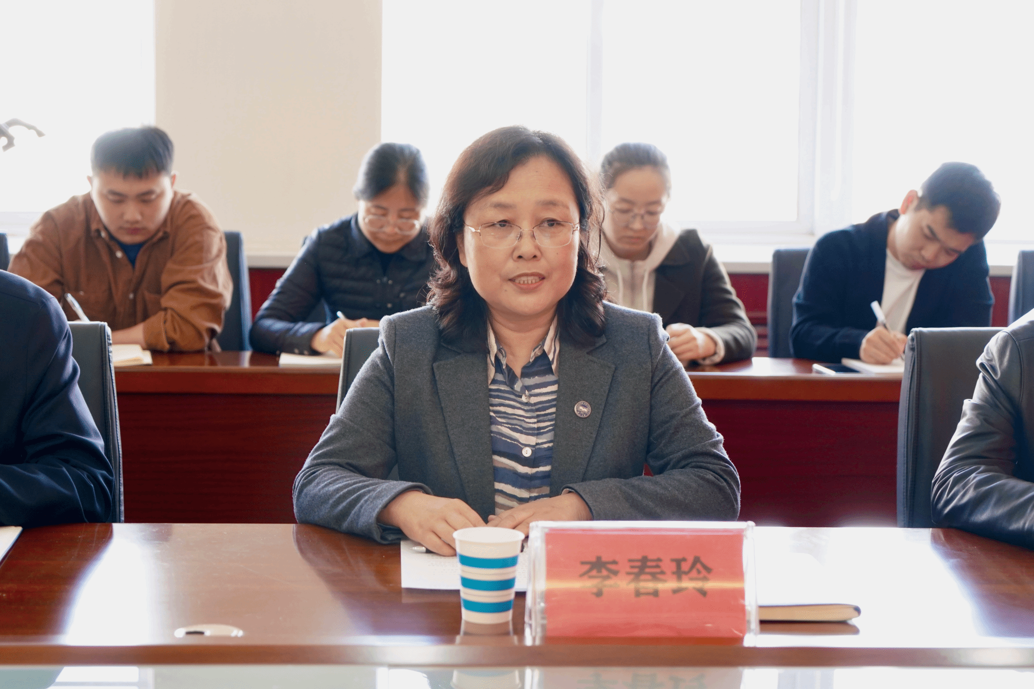 李春玲代表学院师生热烈欢迎孙红磊到任,同时代表学院领导班子作表态发言,表示将全力支持新任党委书记的工作,与班子成员一道,携手全体师生,共同努力推动学院持续、稳定、健康发展。