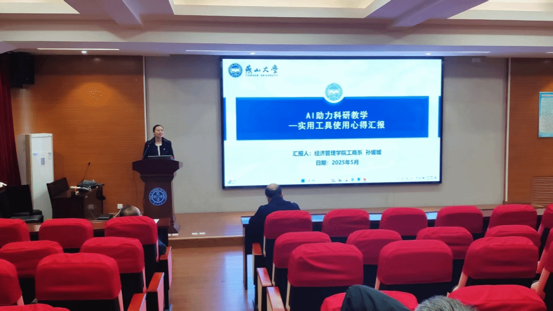 工商管理系孙媛媛老师以《AI助力科研教学实用工具使用心得》为题,分享了Grammarly、文心一言等工具的应用技巧。她强调“精准投喂指令”的重要性,可大幅提升AI输出质量。此外,她还提供了论文润色、实验设计等场景的文档模板,为教师提供了“开箱即用”的AI工具包。