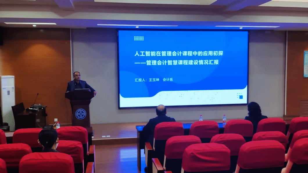 会计系王玉坤老师以《人工智能在管理会计课程中的应用初探》为题,系统展示了课程智慧化建设路径。从线上课程开发到混合式教学探索,再到基于AI的知识图谱构建,他详细介绍了如何通过DeepSeek等大模型实现“师-生-机”三维互动。