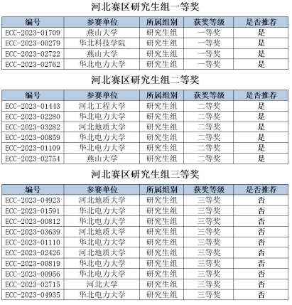 根据大赛设奖规则和决赛答辩成绩,河北赛区组委会最终评审出34项获奖作品,并从中择优选择19项获奖作品拟推荐入围国赛。其中,本科生组:2项作品获一等奖,3项作品获二等奖,9项作品获三等奖;研究生组:4项作品获一等奖,6项作品获二等奖,10项作品获三等奖。具体名单现公示如下: