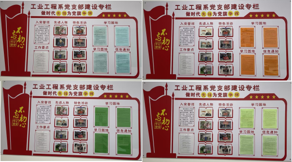 活动伊始,党支部精心设计并制作了内容丰富、形式多样的展板,涵盖了党的二十大精神、习近平新时代中国特色社会主义思想等重要理论。展板在工业工程系党支部活动室显眼位置展出,支部也组织全体党员教工进行关注和学习。