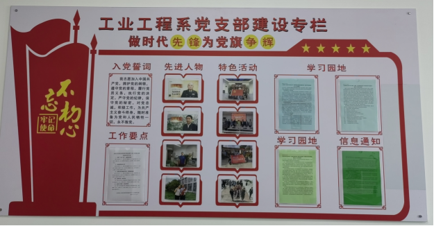 依托燕山大学基层文化建设项目(WX2024027)支持,党委工业工程系党支部积极利用“党支部建设专栏”展板,围绕习近平新时代中国特色社会主义思想,继续深化对习近平新时代中国特色社会主义思想的学习和实践,开展了“党的二十大报告学习辅导百问”、“习近平总书记关于教育的重要论述”、“‘把党百年奋斗的历史经验传承好、发扬好’系列文章”、“党的二十届三中全会精神解读”等一系列党的理论宣传和学习活动,组织开展了钱七虎、唐菊兴、张桂梅等我国教育领域、科技领域等行业领域先进人物图片事迹展览和学习,党建和基础文化建设取得了显著成效。