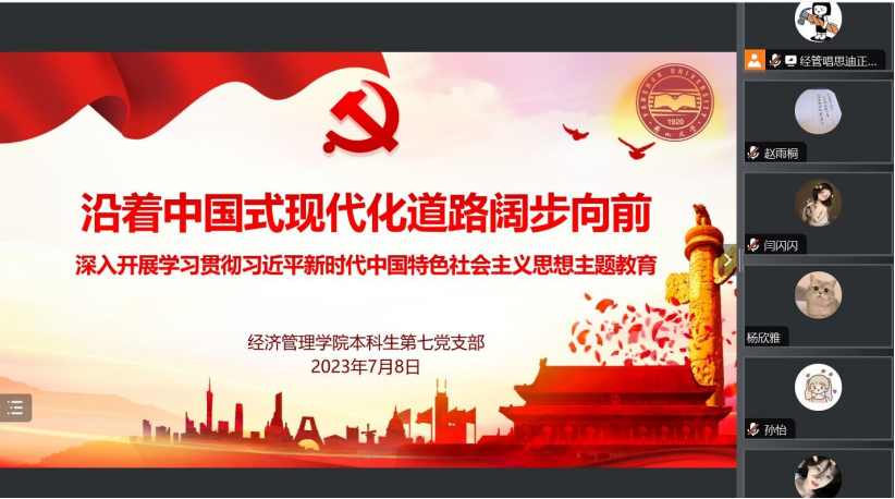 7月8日下午,永利集团yl6809官网本科生第七党支部开展主题教育专题党课,党支部书记唱思迪面向支部全体党员,以《沿着中国式现代化道路阔步向前》为题进行讲授。