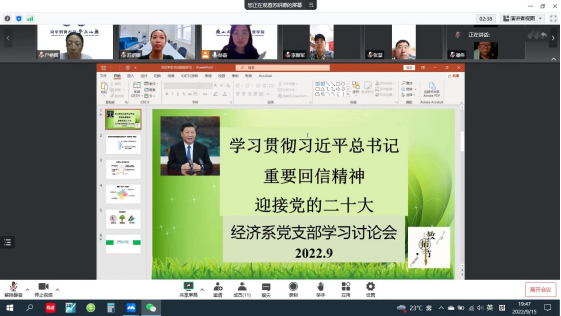 自2022年9月15日起,经济系党支部组织开展学习讨论系列活动,活动主题为“学习贯彻习近平总书记重要回信精神,迎接党的二十大”,具体包括“集体学习研讨”和“个人学习总结”两个阶段。通过开展这些活动,党员们深刻领会了习近平总书记给北京师范大学“优师计划”师范生回信的重大意义和丰富内涵,大家达成共识:要牢记以立德树人、培根铸魂为己任,做到“两个维护”,确保教育领域始终成为坚持党的领导坚强阵地。在学习讨论后,党员们还用书面形式提交了学习心得,表示要珍惜时光,砥砺品格,提高能力,努力为高等教育事业做出更多贡献,用实际行动来迎接二十大的召开。