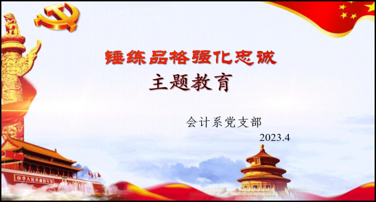 为了深刻认识开展主题教育的重大政治意义、理论意义、实践意义,牢牢把握“学思想、强党性、重实践、建新功”的总要求,坚持凝心铸魂筑牢根本、锤炼品格强化忠诚、实干担当促进发展、践行宗旨为民造福、廉洁奉公树立新风,努力在以学铸魂、以学增智、以学正风、以学促干方面取得实实在在的成效,以实际行动坚定捍卫“两个确立”、坚决做到“两个维护”。4月27日,会计系党支部开展了“锤炼品格强化忠诚”四月主题党日活动。