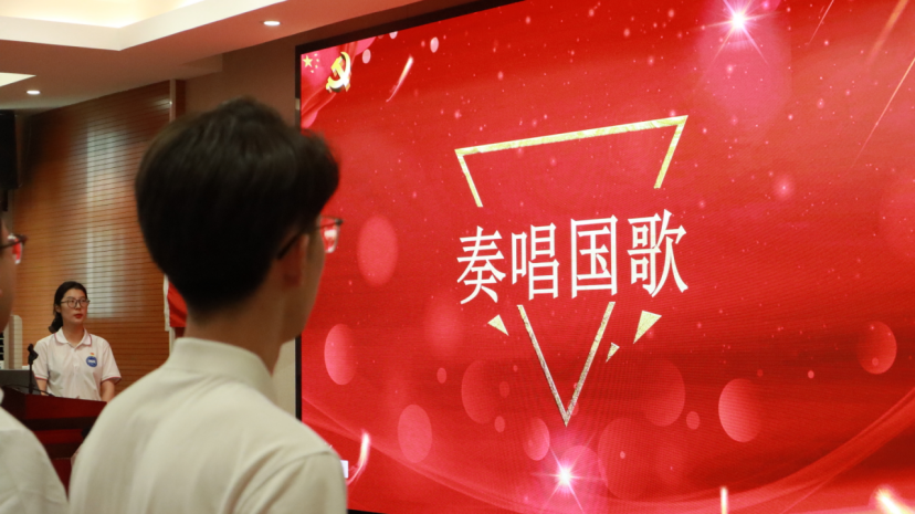 大会第七项:全体党员重温入党誓词,由经济与金融专业党员王萌领誓。全体党员面向党旗右手握拳,庄严宣誓。在激情昂扬的宣誓声中,全体毕业生党员牢记入党初心,坚定理想信念,决心用实际行动践行对党的誓言。