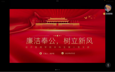 2023年8月5日,永利集团yl6809官网第八党支部通过线上形式开展“廉洁奉公树立新风”主题党日活动,对习近平总书记关于廉洁奉公重要论述进行了学习。