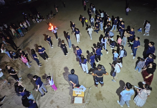 海上生明月,天涯共此时。随着开场舞《护花使者》的激情上演,沙滩篝火晚会正式拉开帷幕。同学们以脱口秀、古筝演奏、歌曲演唱等节目展示了本届MBA新生的才华。令人眼花缭乱的魔术表演引得大家拍手称奇,在歌曲《友情岁月》的旋律响起,激起了一代人的情感共鸣。最后,在一首《萍聚》集体合唱中结束了这场热烈的盛筵,为素质拓展活动画上了完美句点。