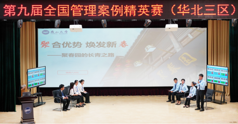 来自南开大学、天津大学、中国社会科学院大学、首都经贸大学、河北工业大学、河北大学、太原理工大学、山西财经大学、燕山大学9所院校共16支参赛队伍参加了比赛。参赛队伍围绕大赛案例《百年中华老字号聚春园的换新之旅》进行陈述和问答,全面检验各参赛队伍对案例的分析理解、延伸视角等综合素质与能力,最后依据材料盲审成绩及现场比赛成绩加总得分评选出团队奖项及个人奖项。