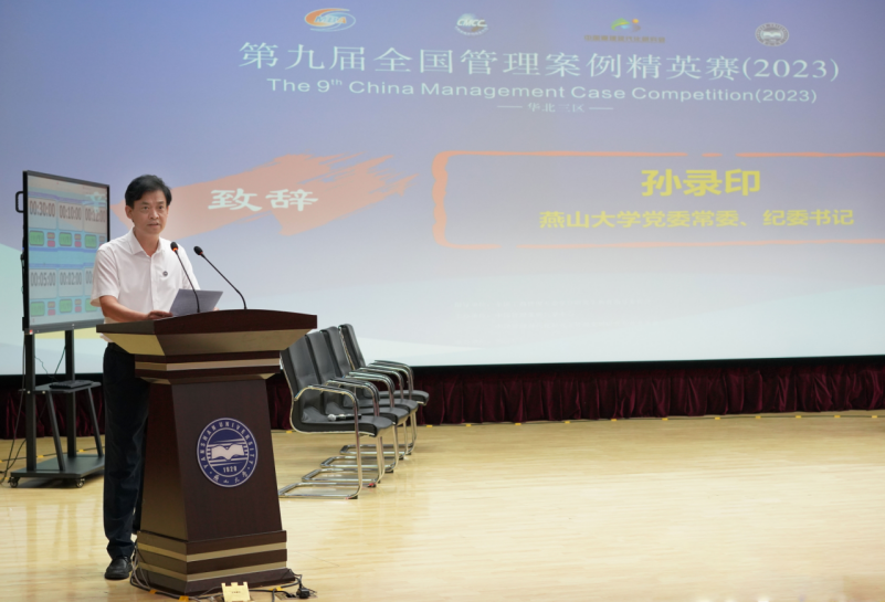 燕山大学党委常委、纪委书记孙录印致开幕词。他代表燕山大学对嘉宾评委、各校领导、参赛队伍的到来表示热烈的欢迎。他指出,全国管理案例精英赛是一场对理论运用能力、逻辑分析能力、定量分析能力、时间管理能力提出最高标准的比赛,是提升MBA专业学位人才培养成效的有效途径。希望通过这种高水平的竞赛和具体的案例分析,让MBA学员们拥有更广的全球视野和战略眼光,更快地融入管理实践情境,更好地触及企业发展的现实问题,把所学知识运用到实践之中,达到融会贯通,实现行知合一。